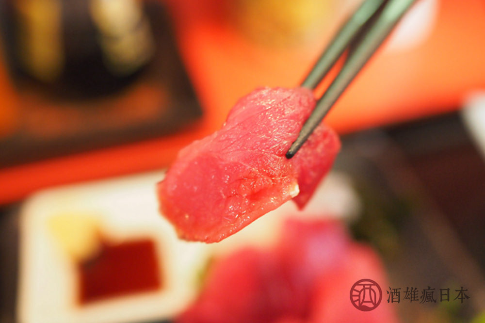 馬上就來吃一口看看,基本上海龜都是冷凍的,我吃的第一片還沒有退冰完全,某些地方讓我有種吃冰沙的口感(內心有點無言)。第一口的感覺非常清爽,不會感覺到有什麼特別的味道,也沒有腥味,幾乎都是醬油味道而已。有種像是在吃白身魚的感覺,不吃味道,而是吃口感。口感來說,會有點像青甘,那種咬下去很有彈性,QQ的感覺還不錯。以刺身來說,可以分類成好吃那一邊的。尤其是紅肉的外觀,白肉的味覺,那種反差所帶來的驚奇,或許就是他受歡迎的理由。