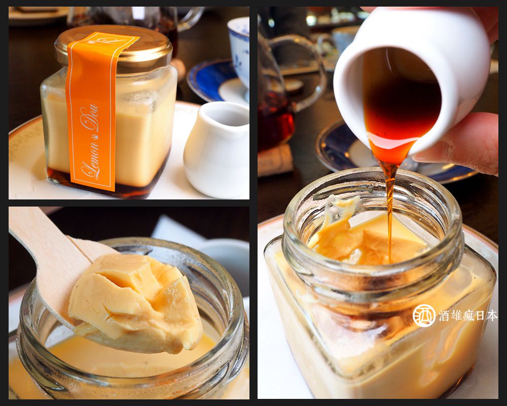 檸檬堂的布丁,是裝在牛奶盒形狀的玻璃瓶裡的,老闆在我們開始享用之前,還特地過來教導吃法: