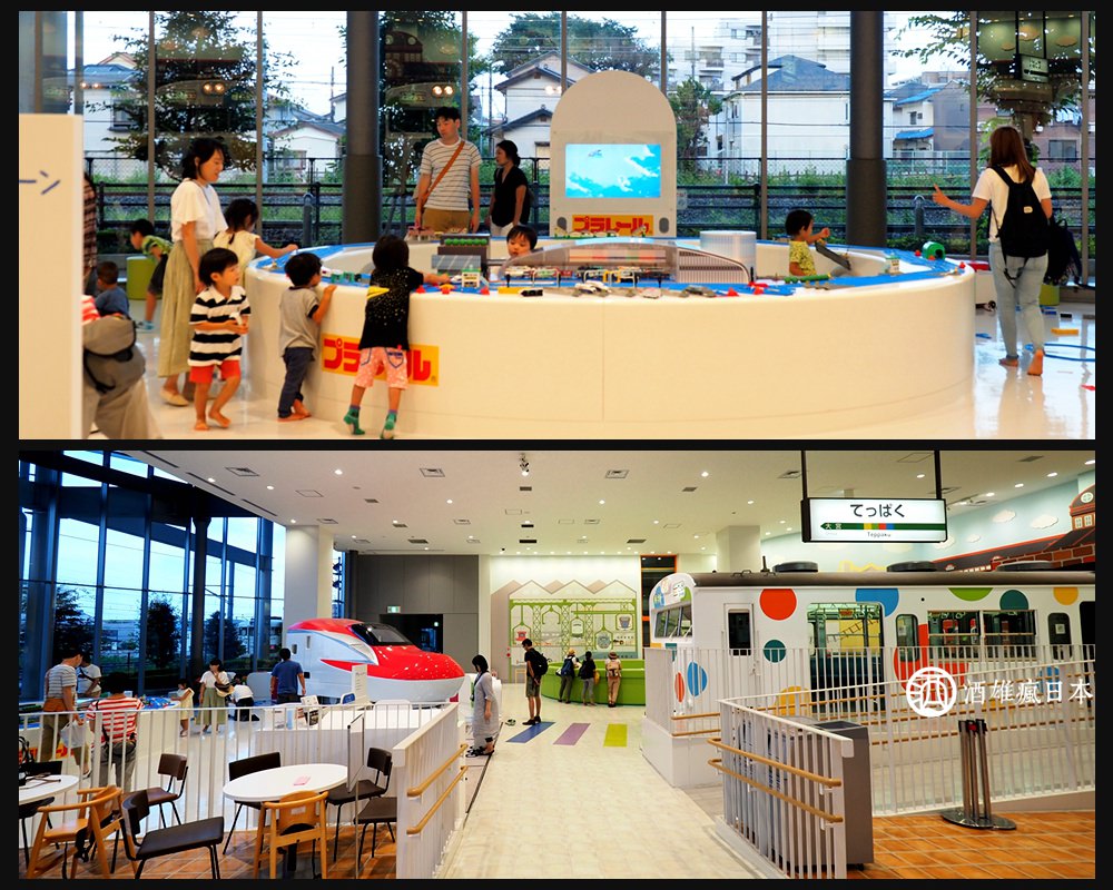 最後是兒童廣場,這裡有附設輕食餐廳,嬰幼兒遊戲區,以及讓小朋友可以跑進去的電車車廂。然後最吸引小朋友的,就是一個可以自由設置鐵軌,讓電車可以在上面跑的互動區。這區的小朋友,每個都是玩瘋了的狀態,爸媽說要走了,甚至會苦苦哀求不要離開。只能說軌道對於小朋友的吸引力實在太大,簡直要命啊!