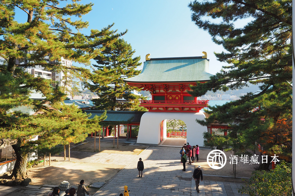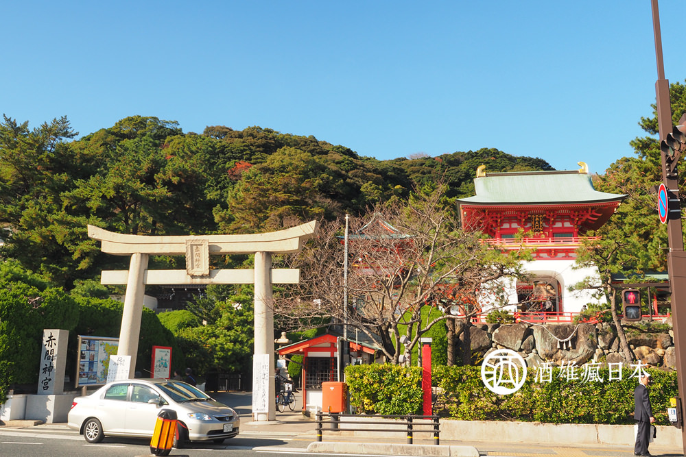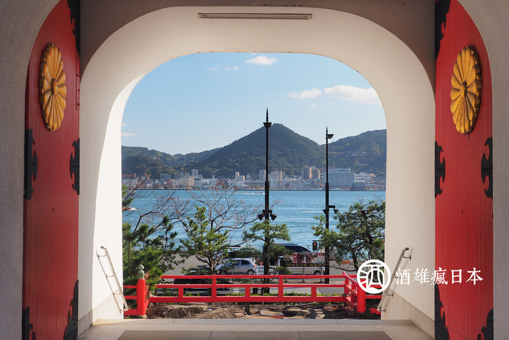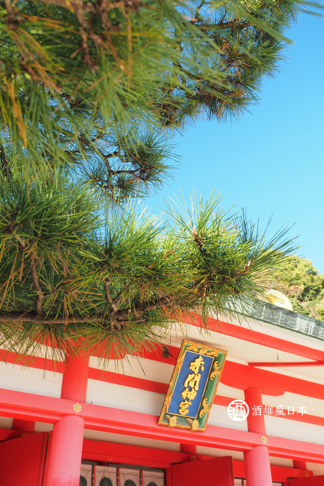 平氏戰敗之後,平氏擁立的安德天皇被外祖母抱著,跳我們眼前的壇之浦(海)自殺,那時他僅8歲(實歲6歲),後來源賴朝建立了阿彌陀御影堂來供奉他,把安德天皇奉為水神,安產之神,被全國的水天宮祭祀,明治時代此堂被升格為赤間神宮。