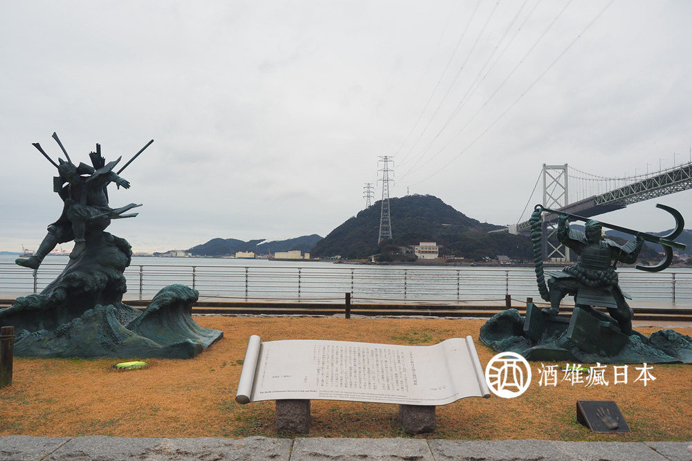 吃飽了可以到關門海峽大橋下面走走,左邊的是戰神源義経,右邊是平知盛