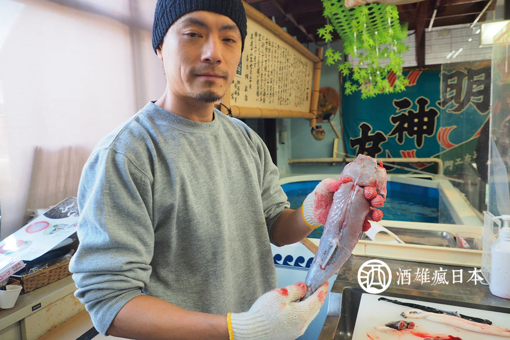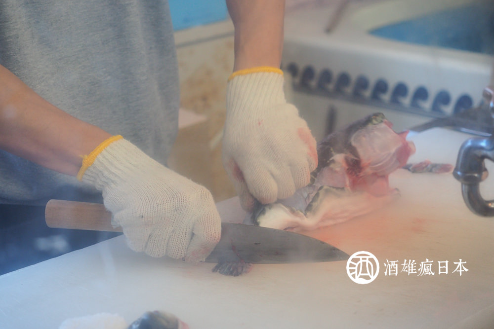 師傅會一邊殺魚一邊解說,其實不是所有河豚有毒的部位都是一樣,像今天處理的虎河豚,就是內臟跟眼睛有毒,其他部份沒問題
