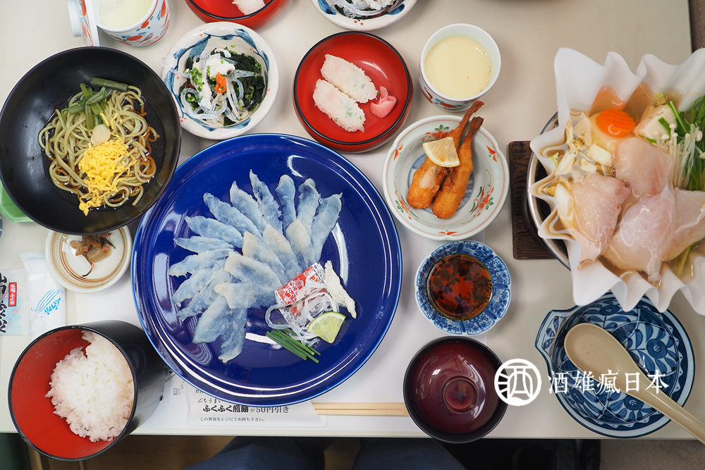 這裡可以吃到的河豚套餐2000日圓,內容還蠻豐富的,但沒有個室,是在團體餐廳那種長桌子吃的(講很多次,表示我真的很在意團餐XDD)
