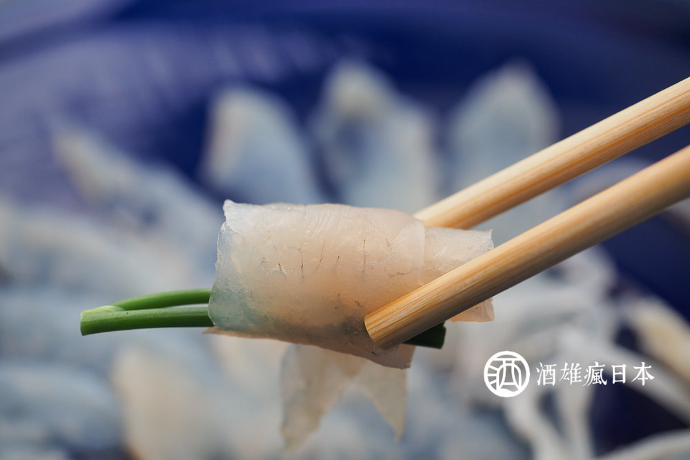 把蔥捲起來沾柚子醋吃,就是一般河豚常見的吃法