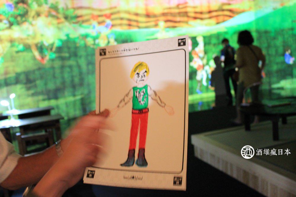 畫好的小人拿到掃描器上,就會看到他出現在牆上的螢幕中