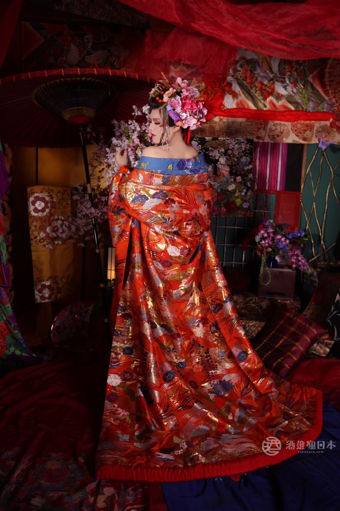 選擇色打掛不是很困難,因為一開始我就決定要帶金色的紅,幾乎可以說是秒決定,如果有選擇障礙的可以先上網看一下和田老闆娘的YOUTUBE頻道,裡面有很多別人拍的影片可以參考。