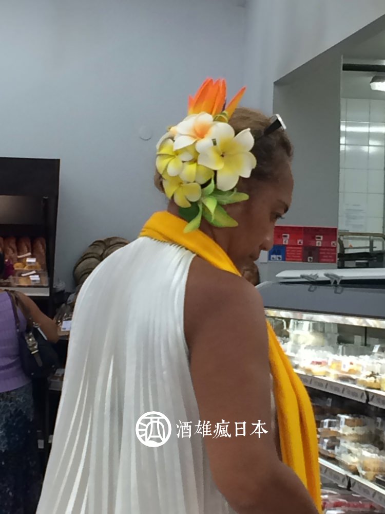 ▲佩戴花飾是大溪地的日常,就連逛家樂福都要美美的。
