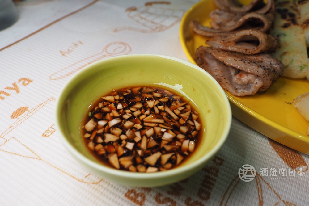 大蒜醬油真的是蛋餅的靈魂,另外也可加入甜辣醬,如台中東泉。