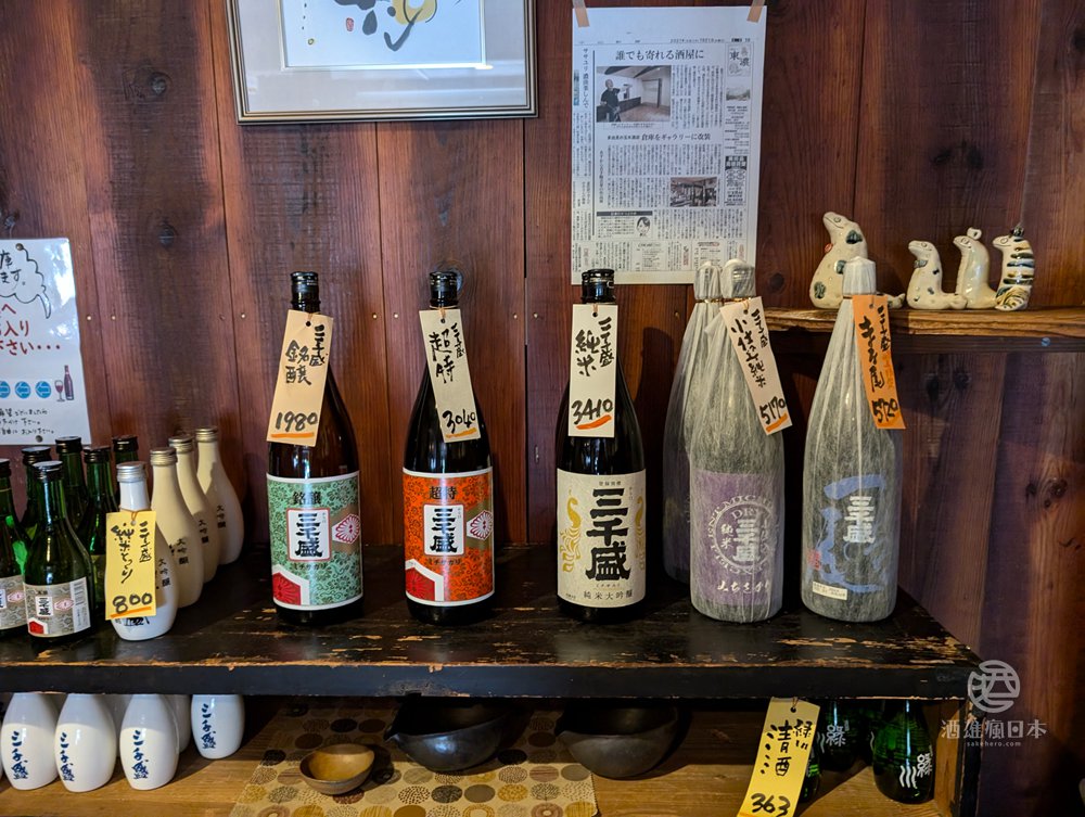 以酒屋來說,販售的酒款種類並不是特別多,並且以在地酒造的三千盛為主,幾乎全品項都有販售。另外像是新潟縣的綠川,也會有些珍稀酒款,想不到也能看到,搞不好岐阜縣只有這裡能買到。