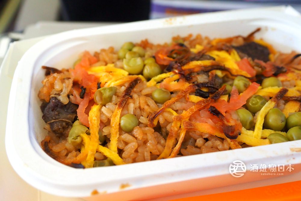 牛肉本身非常入味,飯吸飽了湯汁不會太乾,以機上餐來說水準還ok,已經贏過很多航空公司了。套餐價位450元,雖然是比較高一點,但不管如何,也是提供了機上熱食服務,萬一真的很餓的時候,吃一下還是不錯的!