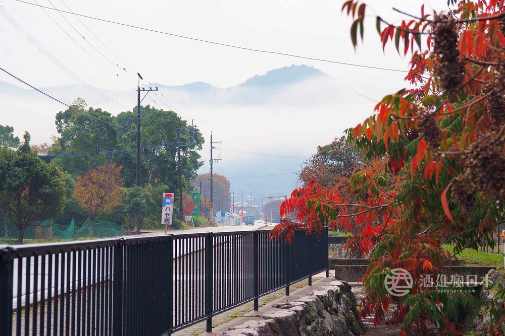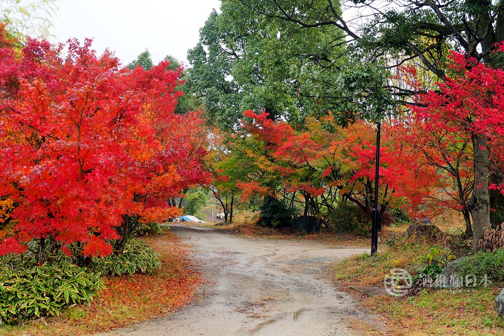 紅葉偶有佳作不是嗎? 遠處埋在霧裡的山景,頗有風情。 行道樹大約1km裡長,有時間的話慢慢散步也不錯。