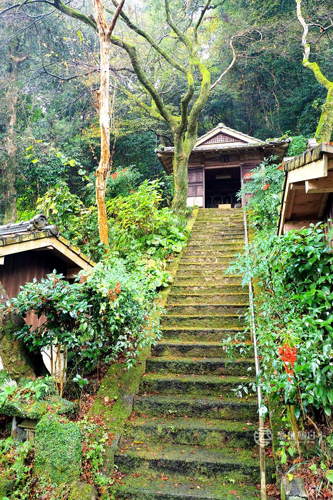 寺內有個小小的階段路,可以走上去小小散步,不會非常遠,但青苔叢生,要小心天雨路。