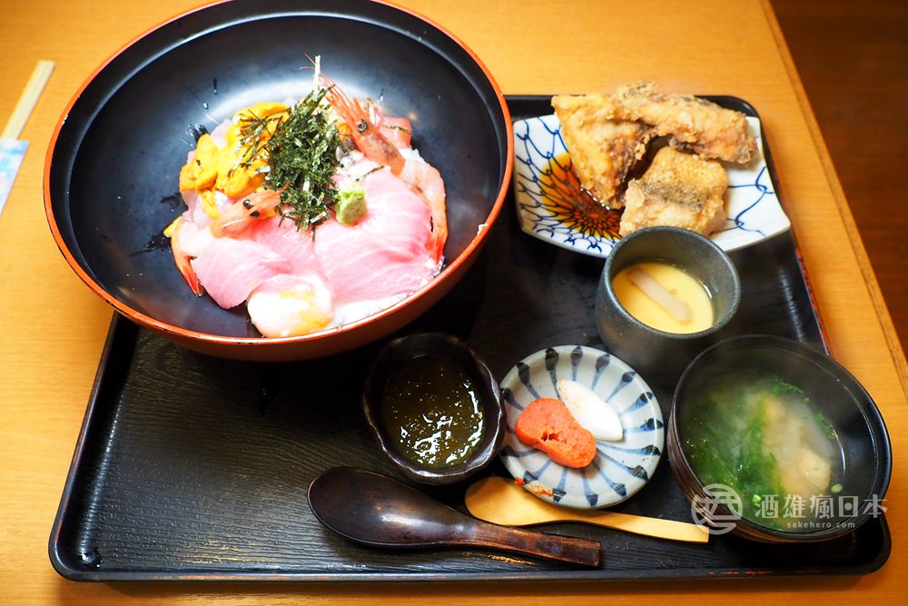 除了海鮮丼本身之外,還有醋物、明太子、味噌湯、茶碗蒸跟炸魚塊,還是很大塊的那種。