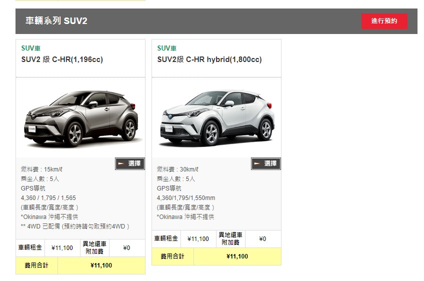 旅遊花費都是一分錢一分貨,當然租車也是,想要新款且車況極好的車款,當然價位上會比較高一些,但這就是看您的取捨囉!現在TOYOTA租車公司已經有中文訂車官網了,所以如果您是不懂日文的朋友,那建議您可以使用中文網頁來訂車。