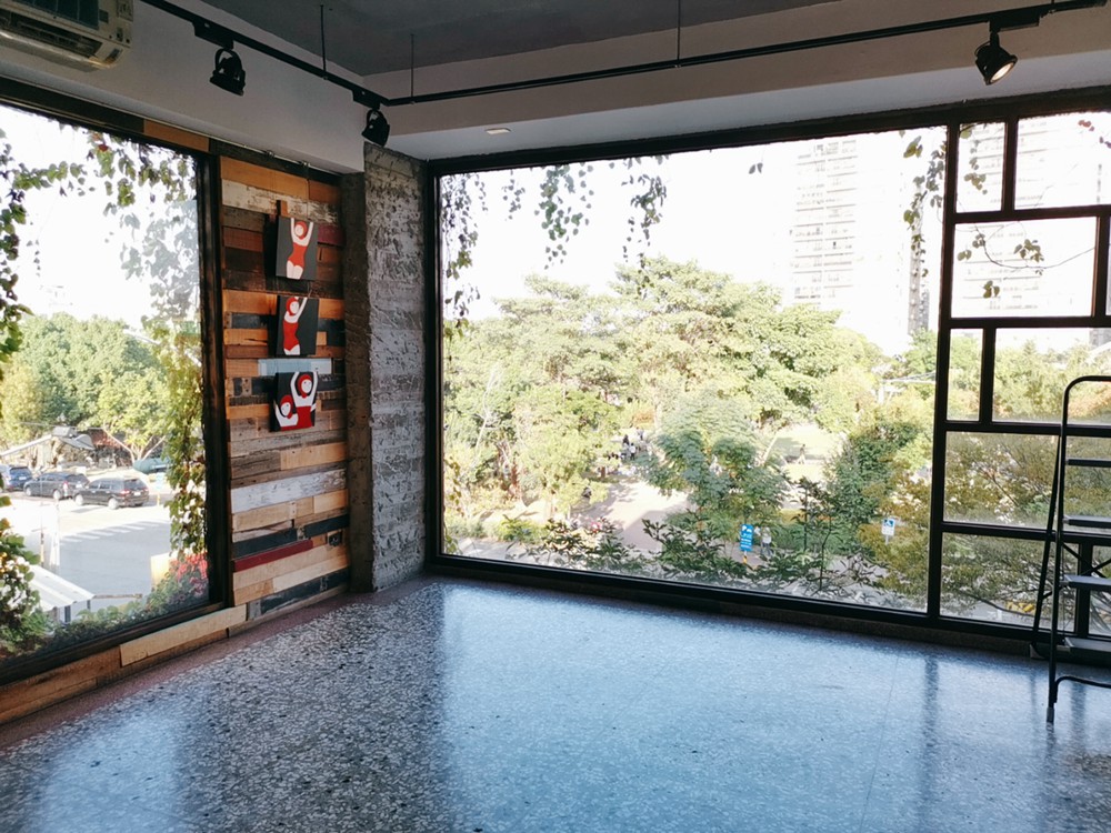 三樓是小小展覽空間,從室內也可看到對面員林公園的綠意盎然,那些協調而平和的顏色,好像也化為展覽的一部分。