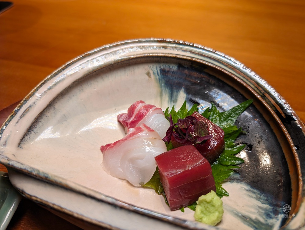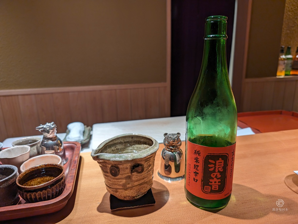 酒單上有寫到日本酒,請料理長拿出來展現一下,竟然就看到我們本事之友的「浪乃音」,一間位於琵琶湖畔,由一家人和樂融融手工釀酒,小規模但非常有溫度的酒造。這瓶超辛口,單喝會覺得尾韻的苦跟澀比較明顯,但如果是搭餐來享用,就是非常棒的選擇。苦跟澀可以帶走旨味,在口中不至於停留太久,非常有助於筷子的進展。挑選日本酒,到底是純飲還是搭餐,把酒言歡還是談生意,每種不同場景,都可以講究不同款式,選對了的時候,那種成就感是很迷人的哦!