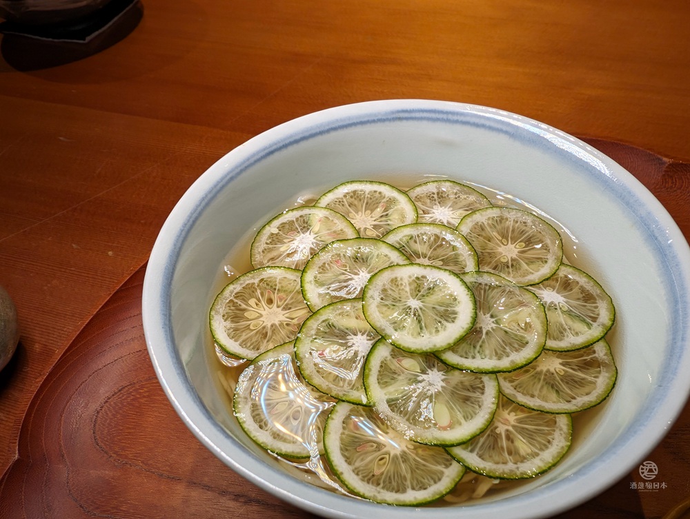 作結尾的是非常應景的すだち蕎麥麵,好清爽、好解膩的口味,雖然是五月造訪的京都,但日間已經非常悶熱了。蕎麥也是遠藤主廚自己打的,似乎就是其中一個招牌,還有客人專程為了蕎麥而來,真的好吃,雖然不是什麼高級食材,但光台灣吃不到這一點,就超級吸引人了啦!