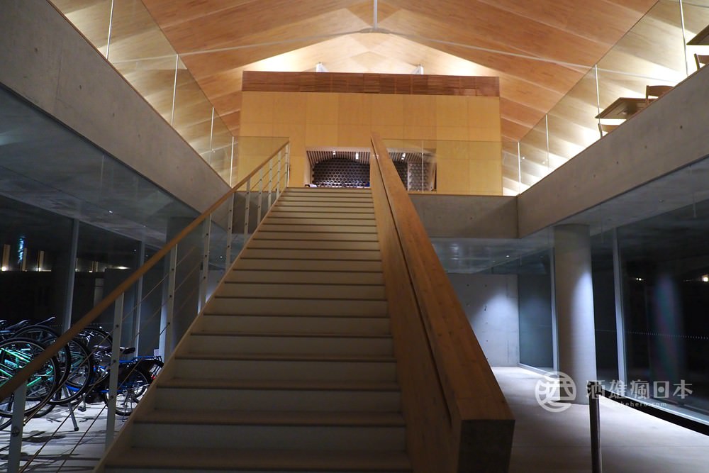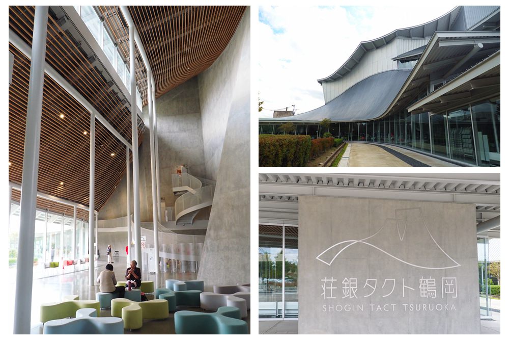 荘銀タクト(正式名稱為鶴岡市文化會館)在設計的時候,特別重視要能符合在地的景觀,經過與市民的討論與工作坊之後,才拍板定案。落地窗連成曲線的一樓空間,讓我還是想起金澤21世紀美術館,雖然同行友人說不像。因為裡面正在舉辦合唱團的音樂會,所以我們沒辦法進到表點廳參觀,不過光是走到裡面,就能感受到建築物有獨特的氛圍,一進來就一直有種特別的感覺。