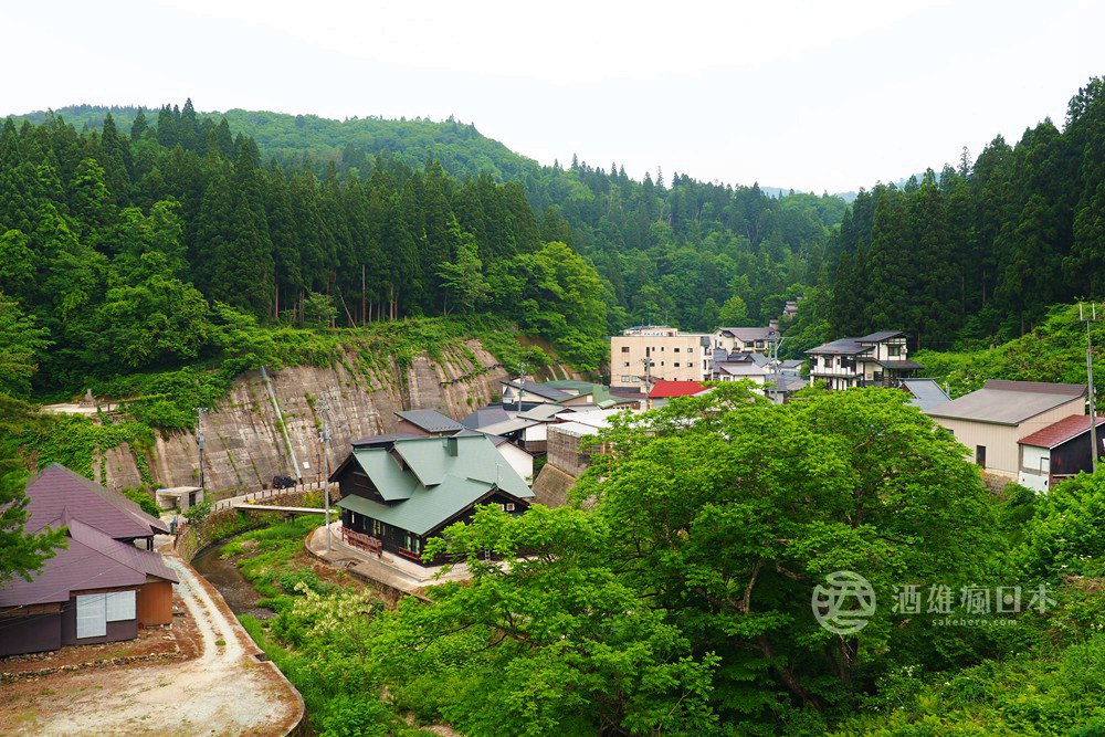 自駕來銀山溫泉,如果沒有住宿,需要把車停在距離建築物約800公尺遠的停車場。上次來是一片雪白,這次已經是一片綠意。往溫泉街走,就可以看清楚銀山溫泉的地形,真的是沿著河谷地發展的呢!距離我們最近的木造建築,是出自建築大師隈研吾之手的公共澡堂-しろがね湯。如果有時間的話,可以去泡一下湯。