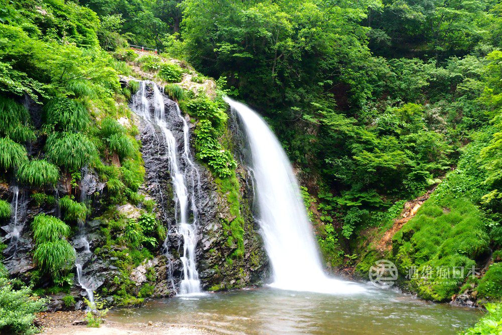 溫泉街最後面有個瀑布,在冬季是無法靠近的,夏季雪融,水勢真大。