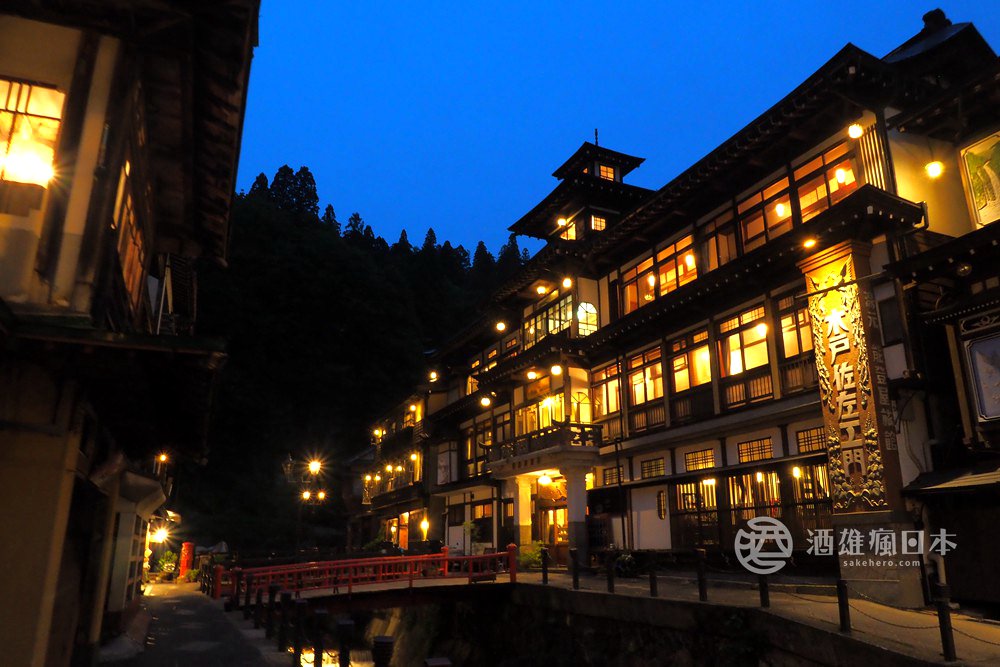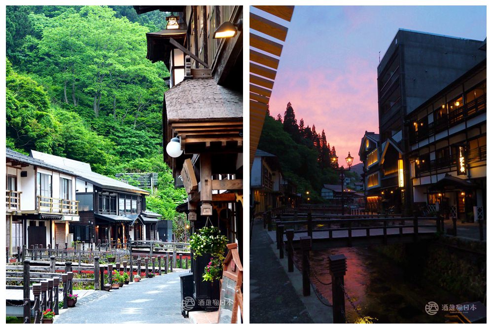 抓傍晚要天黑前的時間來,就可以在兩小時之內,一次欣賞到兩種色調的銀山溫泉。
