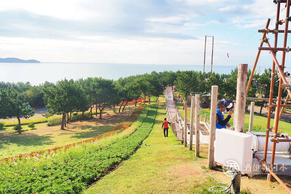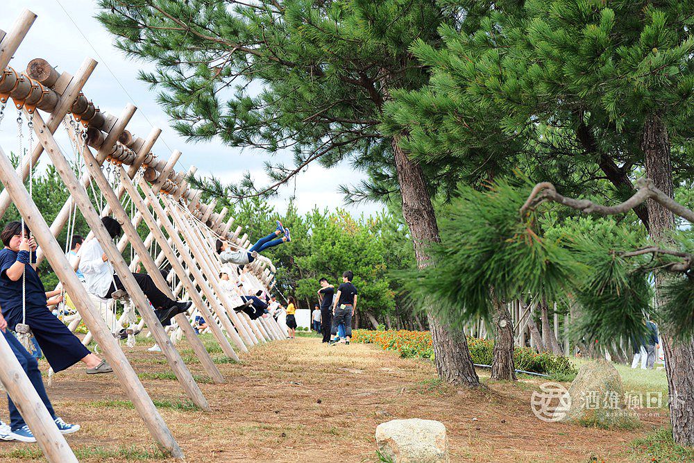 全長150公尺,可以70人同時玩的鞦韆台,以松樹為伴,面海賞景,真是非常有趣的設計。若是你的運氣好一點,遇到大晴天,應該會有超美的海景可以看!