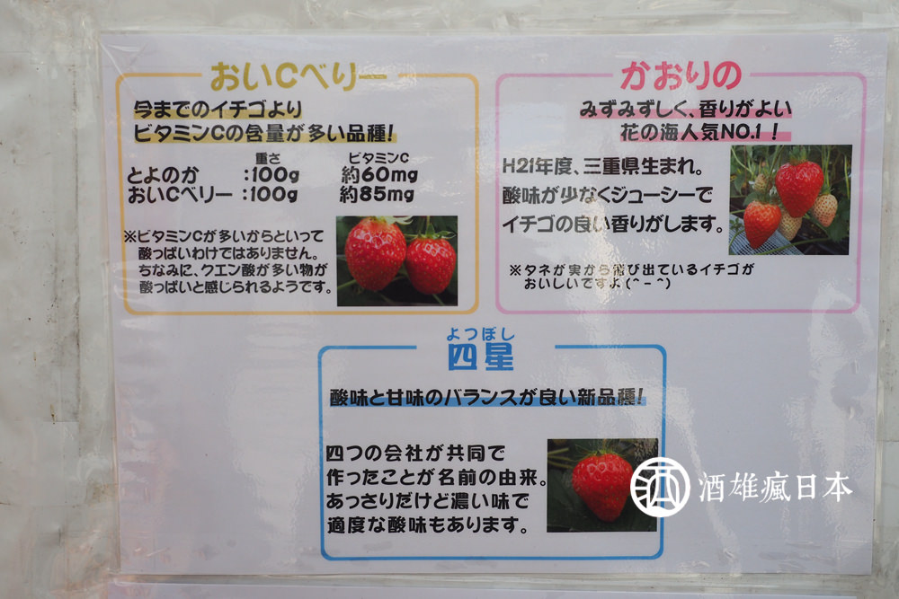 這邊的草莓共有3個品種,其實我只聽過右上的「かおりの」,今天除了かおりの還可以吃到四星