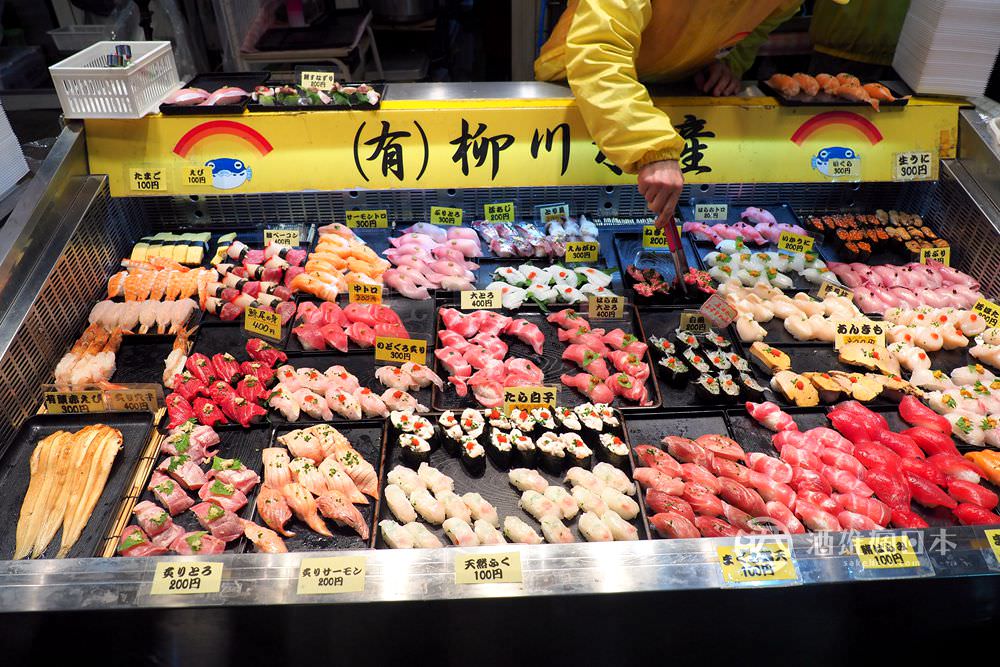 第一站來到假日變成壽司自助餐的唐戶市場,可以逛攤位挑選自己喜歡的壽司,而且只買一貫也沒關係哦!大膽地給他逛過每一攤!
