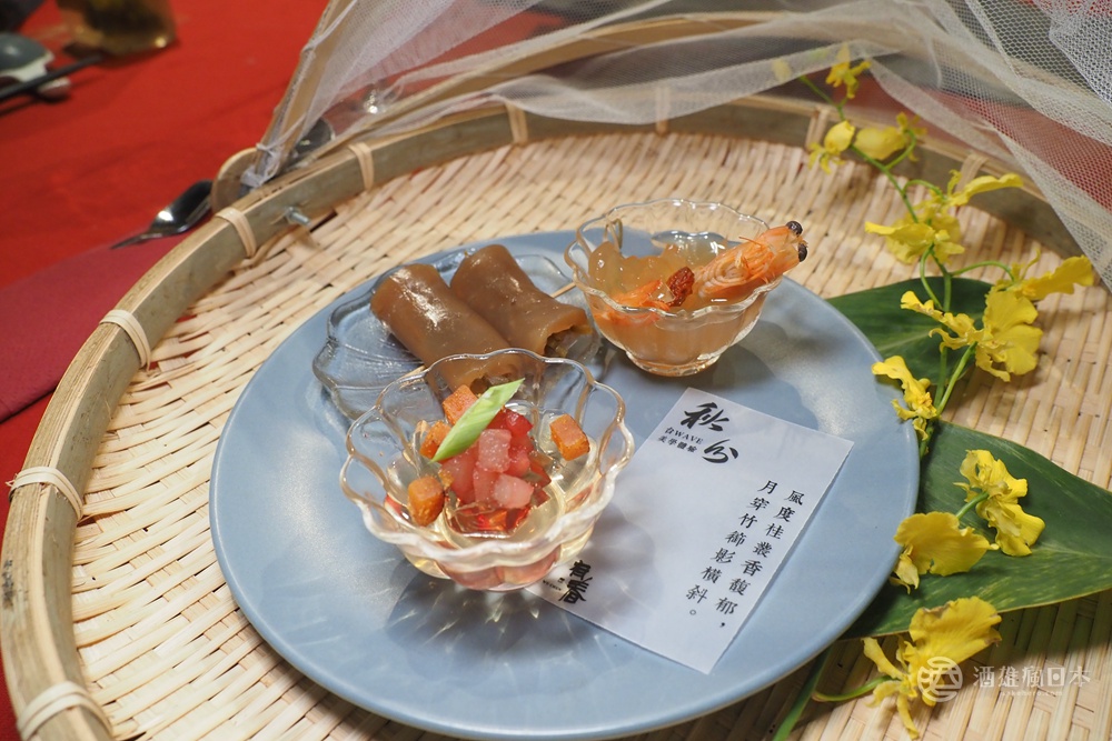 她說台菜不一定要那麼傳統,每次都要湊滿人數辦桌吃飯,對現代人來說,真的很有困難。只要透過好的編排,能把台菜納入一個套餐,不只減輕負擔,還能賦予滿滿的文化與美學意義。這次「有春茶館」就以我們結婚時都會看到的「謝籃」作為主視覺,把大家熟悉又懷念的味道,以非常溫柔的姿態,呈現在謝籃中。